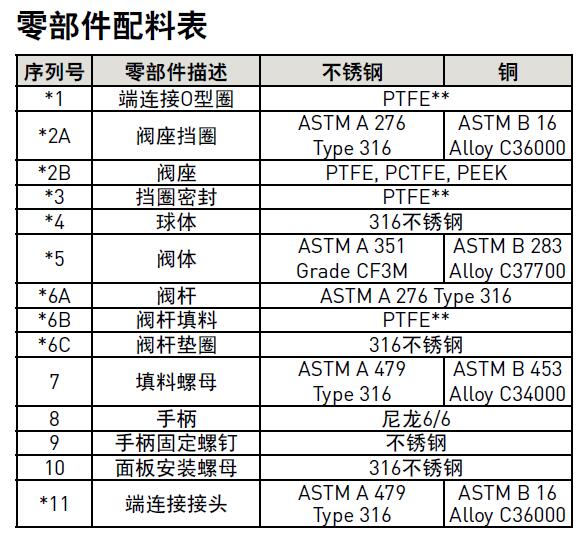 - 阀体标准材料为316不锈钢和铜材质,蒙乃尔合