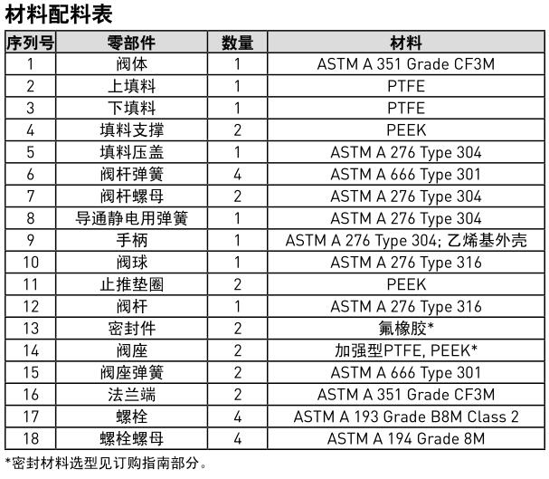 注: 当订购带石墨密封的阀门时,上下PTFE填料将被换成PEEK填料。